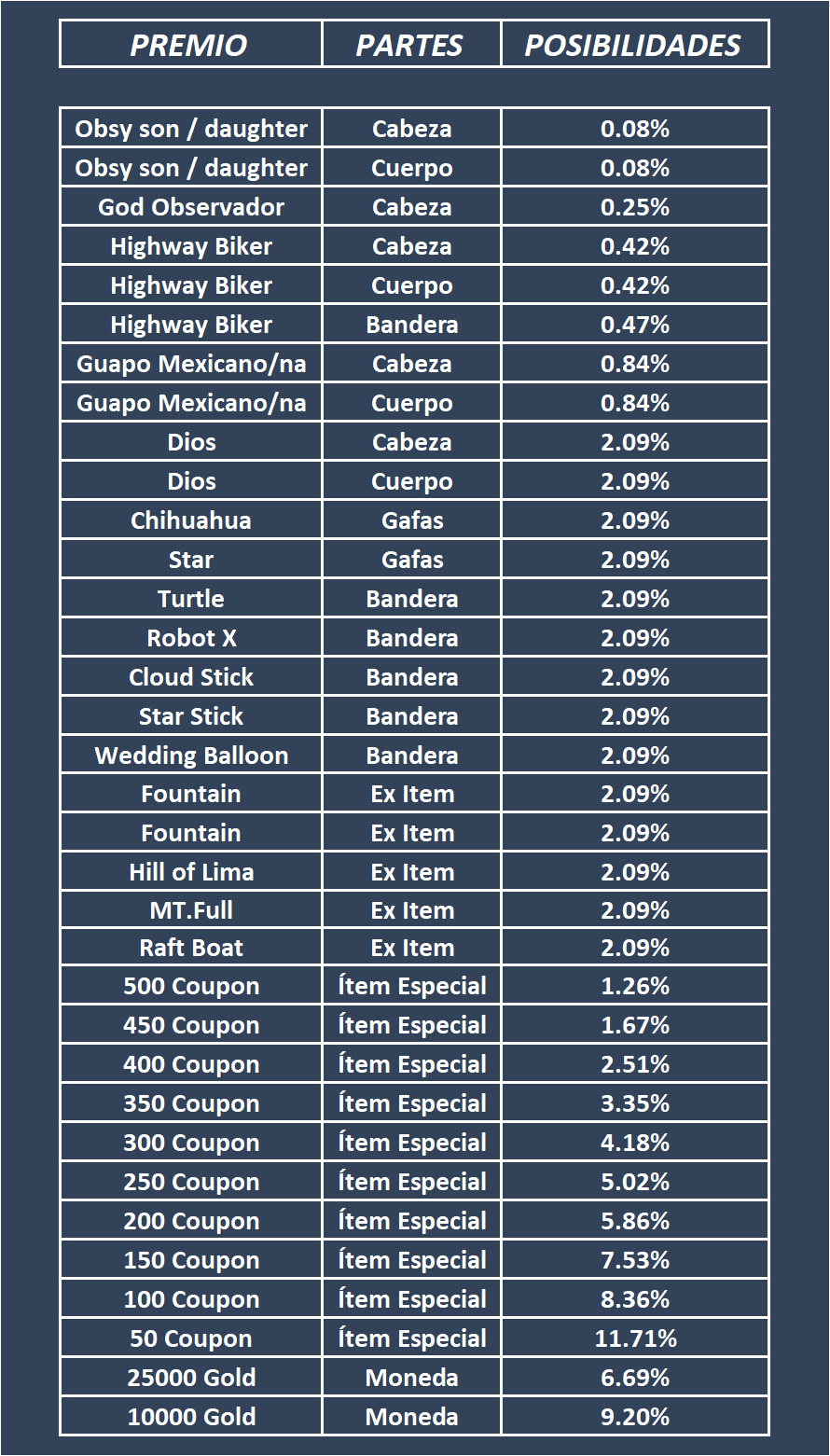 LISTA DE RECOMPENSAS LISTA DE CHANCE