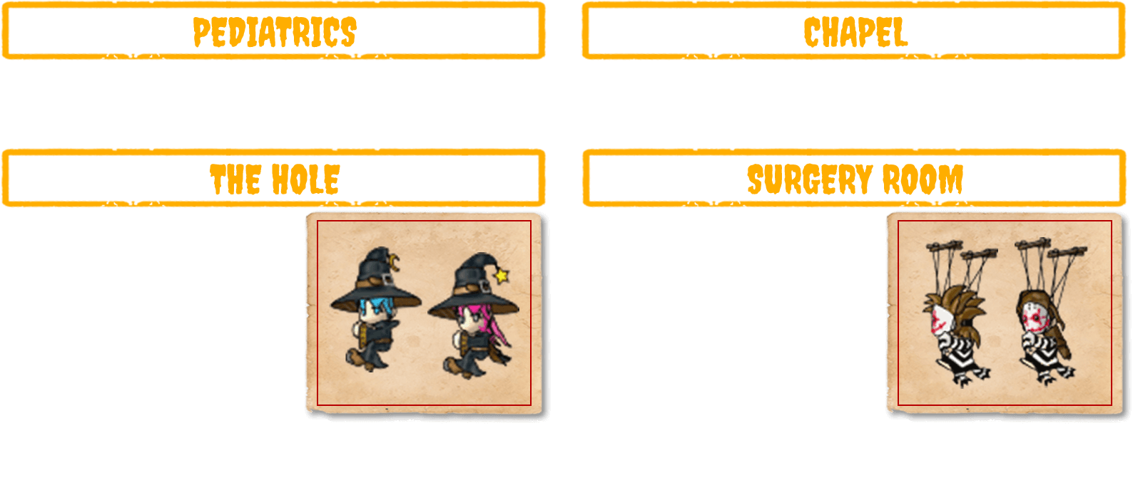 Sweet Abby (Cabeça) Sweet Abby (Corpo) Creepy Teddy (Óculos) Jingles (Bandeira) Sucky Sacky (Ex Item) Pediatrics (Ex Item) |