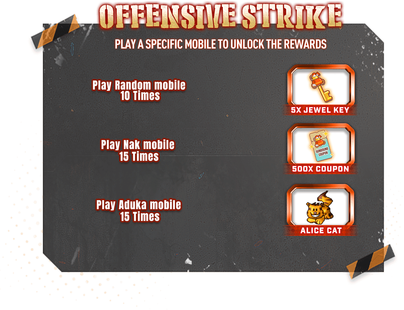- You have to play with a specific mobile required for a certain times to unlock the rewards.